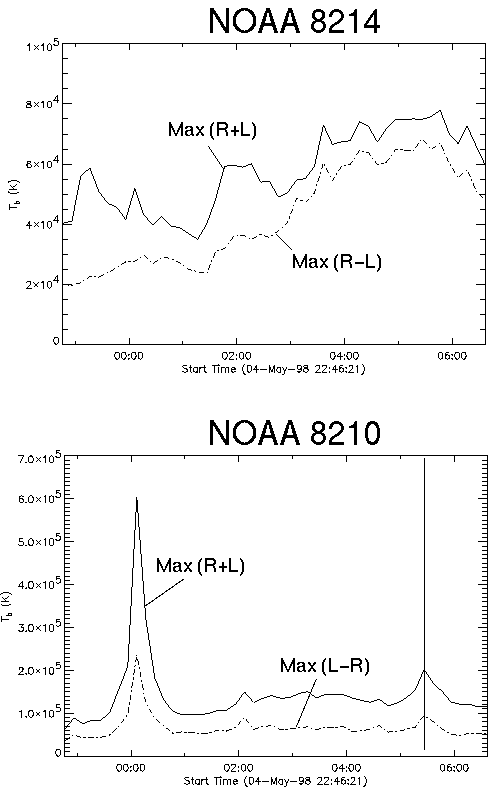 in microwaves. Two flares occured in NOAA8210 today.