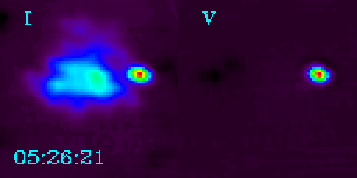 in the top full image (314" X 314"). Right image shows I-component (R+L) emission,