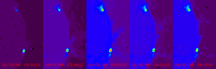 1) While AR 8210 was going toward the SW limb, M7.7 flare occurred