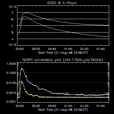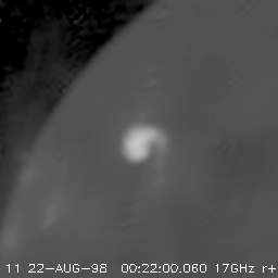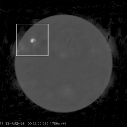 (left) Full sun 17GHz map. The flare region is indicated by the solid box.
