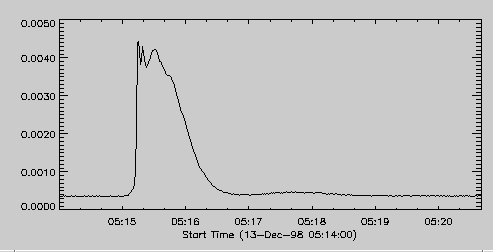 EventID : 19981213_0515 Observer : Y. Hanaoka Keyword : Flare Start : 1998-12-13 05:14:58 Peak : 1998-12-13 05:15:15 End : 1998-12-13 05:20:47 Position: S22W77 Maximum Correlation @17GHz (x10^-4) : 469 GOES: C3.0 NOAA Number: 8404