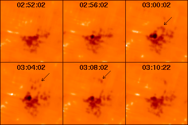 A compact flare accompanied by a mass ejection. Bright ejecta seen at 17 GHz is denoted by arrows. This mass ejection is also seen in SOHO EIT 195 A images.