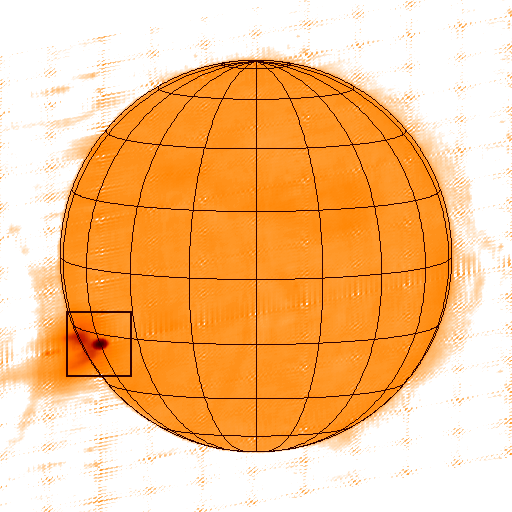 Image of the whole sun at 17 GHz (negative). A square shows the