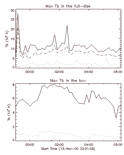 Time evolution of the maximum Tb.